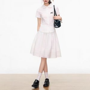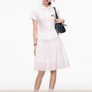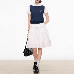 | color | White shirt, Navy blue vest, White mid-skirt |