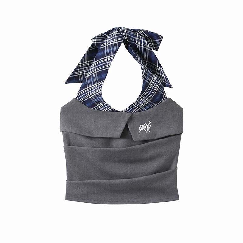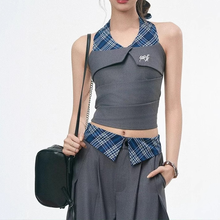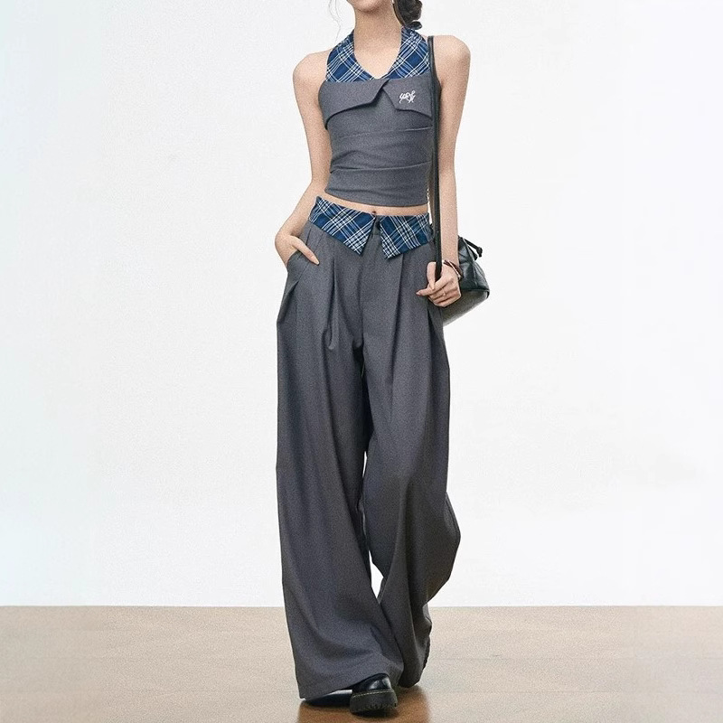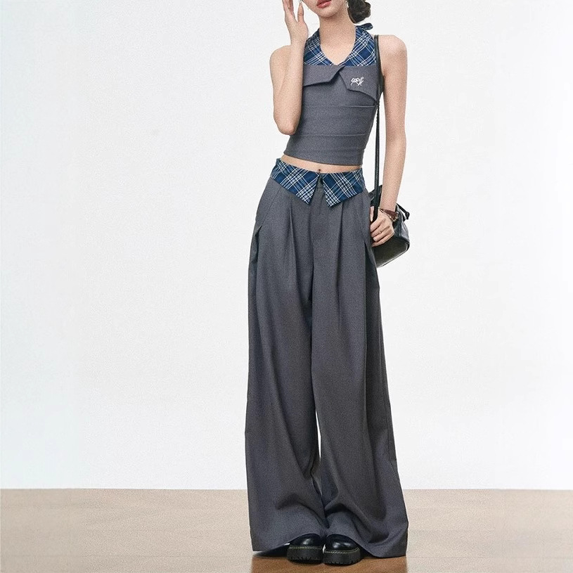 Month issue spliced ​​halter neck vest for women in spring and summer commuting wide-leg pants