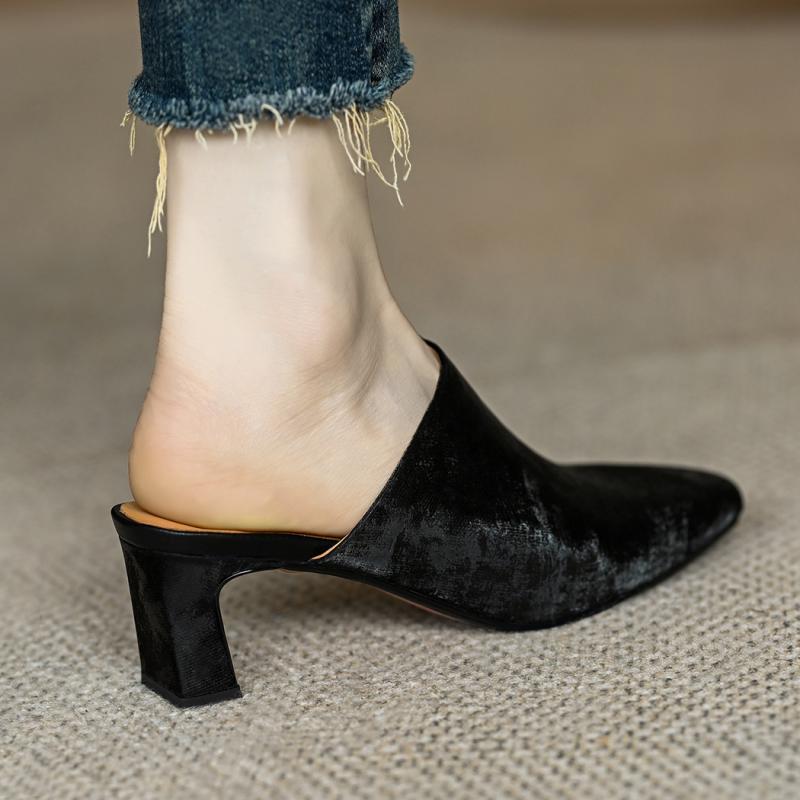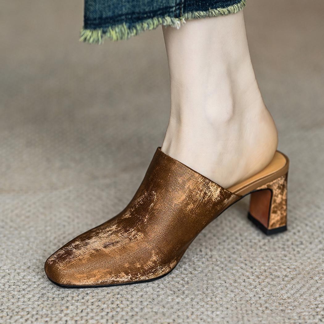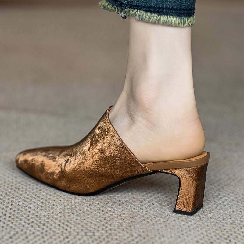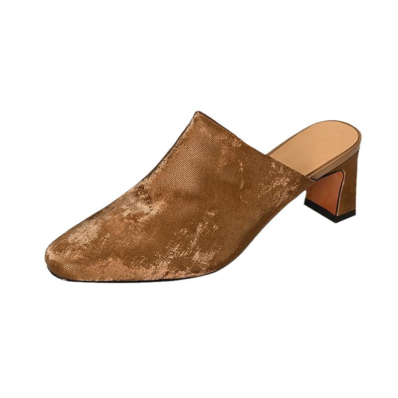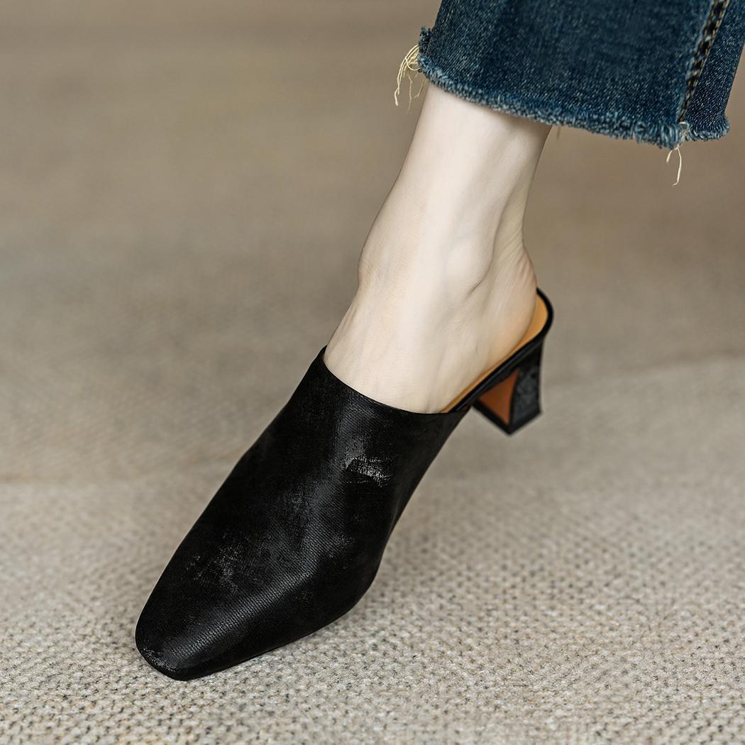 New Chinese style Baotou semi-drag women’s summer wear square-head thick heels simple lazy muller slippers