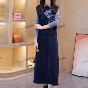Nobein winter college style knitted dress fashionable two-piece set
