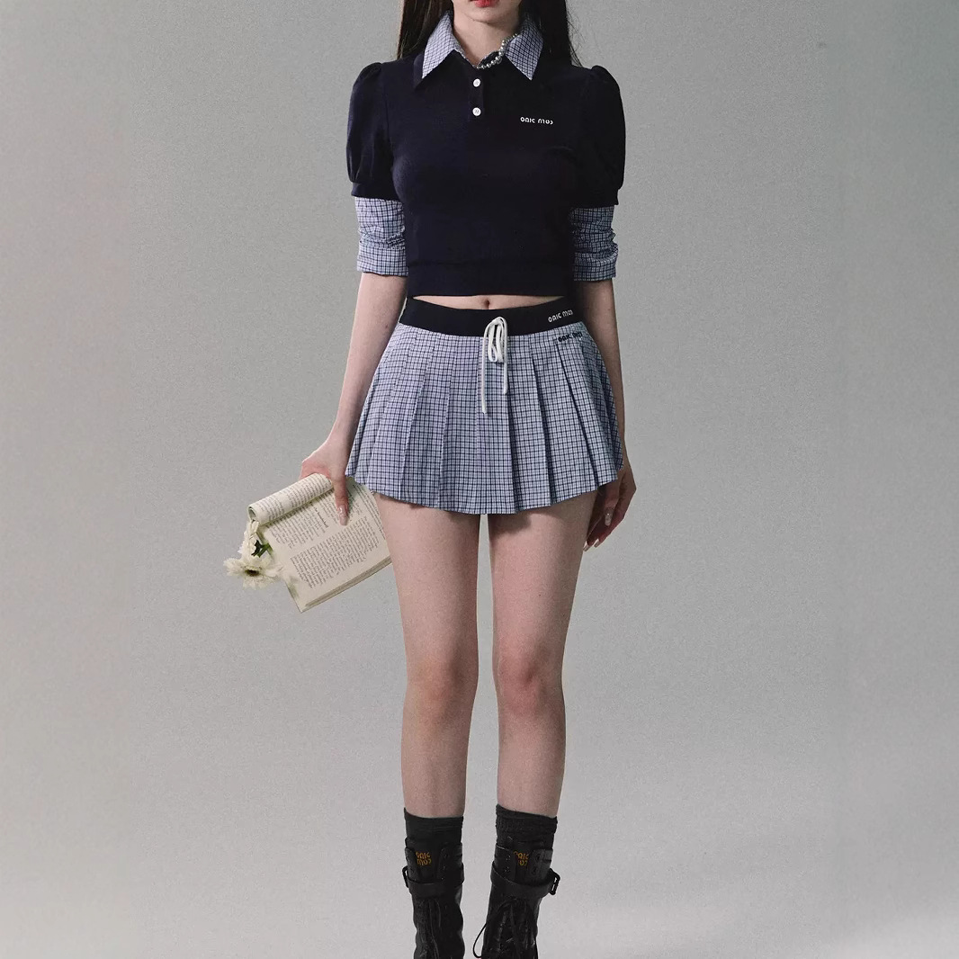 / “Oak Library” Sports Fake Two-Piece Shirt Suit Women’s Autumn Shirt Short Skirt Two-Piece Set