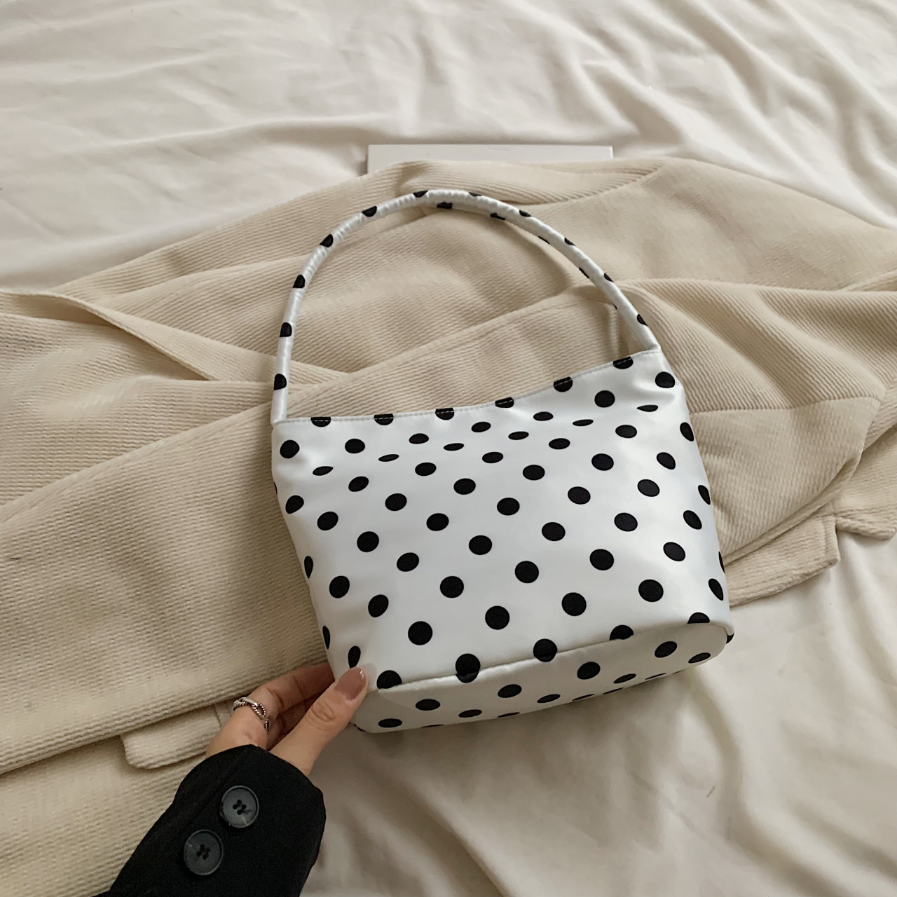 One-shoulder mini spots niche spring and summer bag trendy small bag casual tote bag women’s bag polka dot hand carry