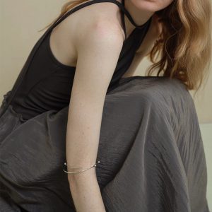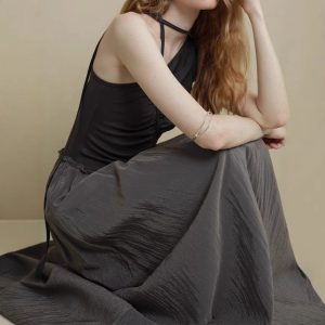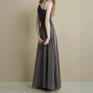 Original irregular splicing contrasting color pleated design feels slanted shoulder sleeveless dress