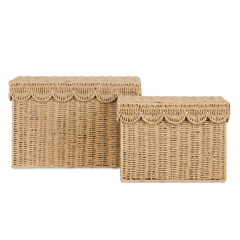 Paper rope woven clothing storage basket wavy cover storage basket storage box living room toys and debris boxes pastoral storage basket