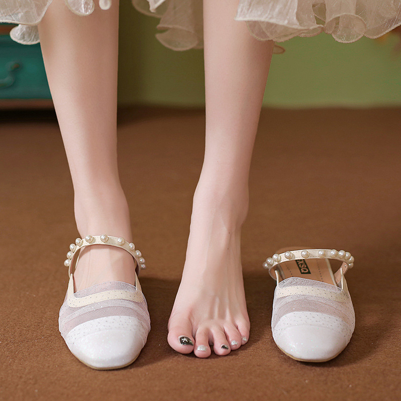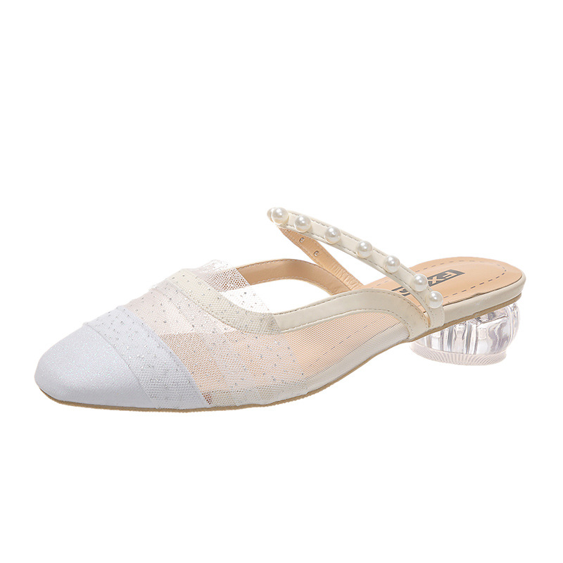Pearl bag head half slippers for women in summer sandals thick heel French gentle mules for women