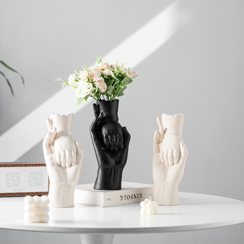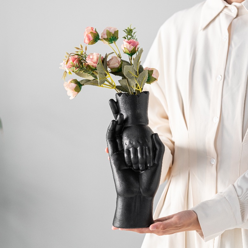 Personalized hand in hand ceramic vase light luxury texture ceramic flower insert home decoration