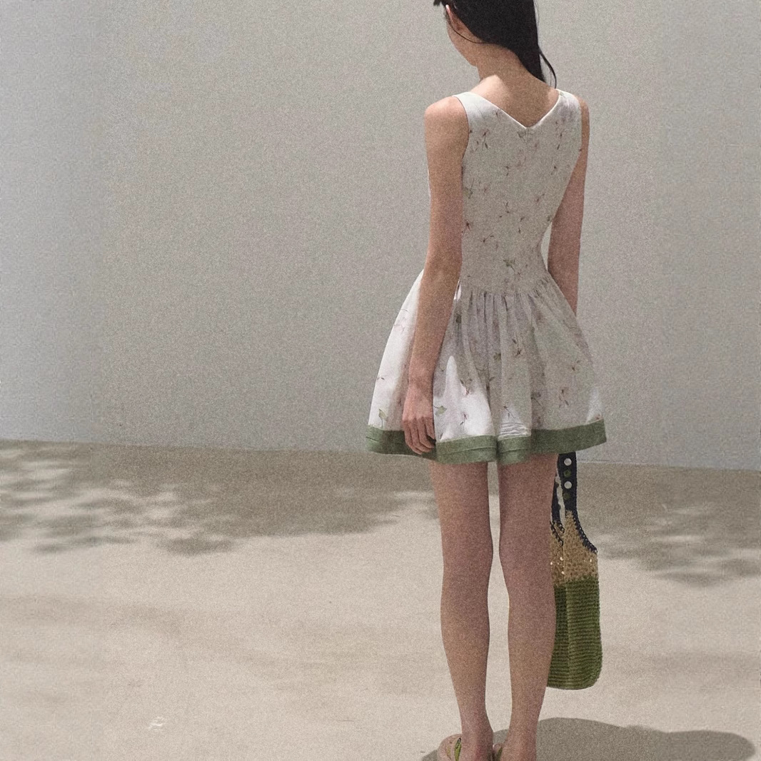 / “Picnic Note” Tencel Linen Spring Texture Relaxation Print Slim Pure Vest Dress