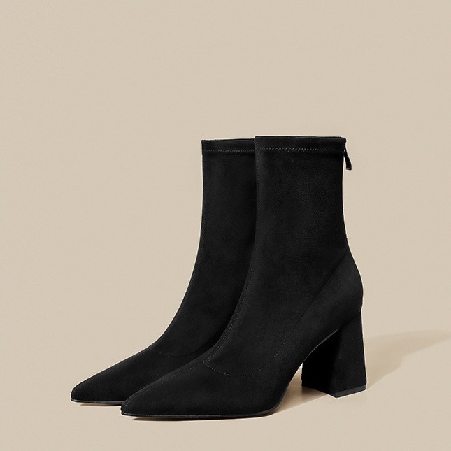 Pointed toe thick heels for women in autumn and winter high heels thin Martin boots plus velvet elastic socks single boots