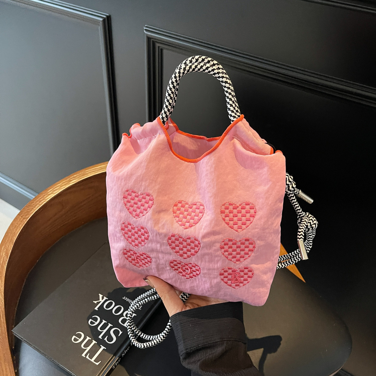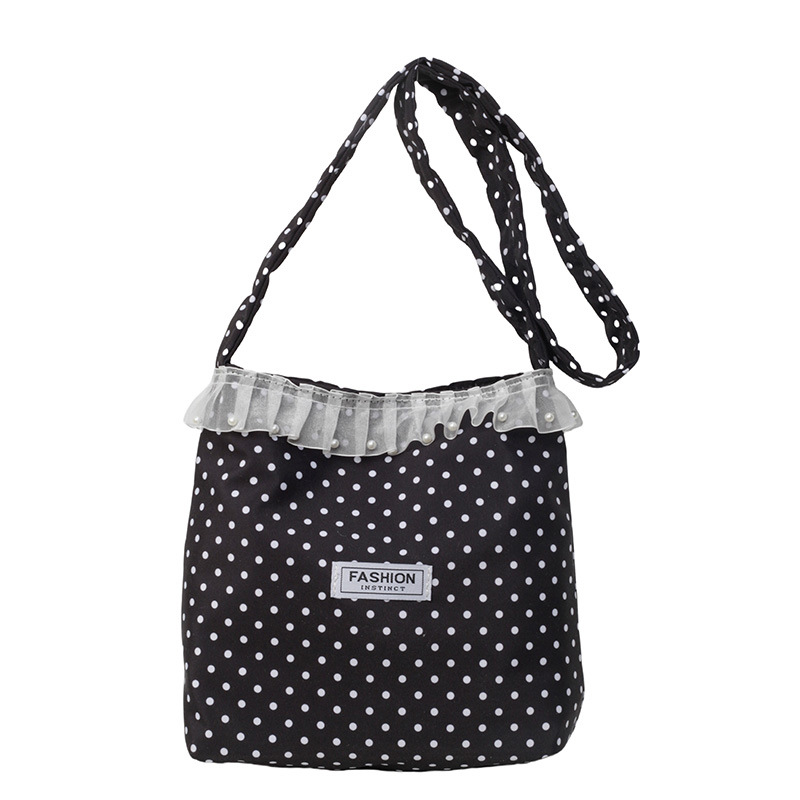 Polka dot lace canvas bag for women single shoulder large capacity tote bag for students class commuting bag