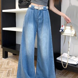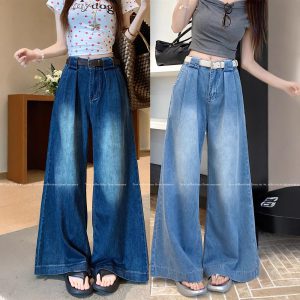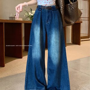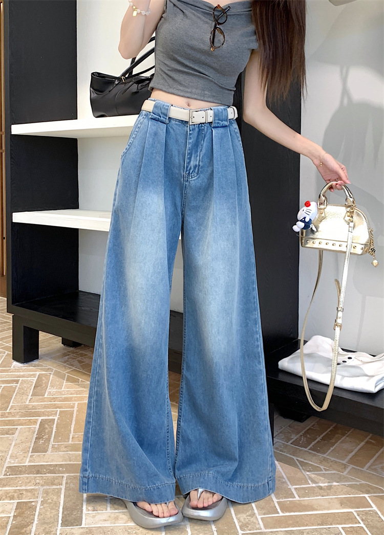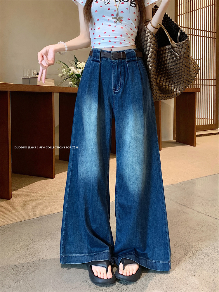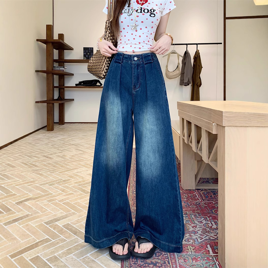 Real photo~ American retro wide-leg jeans for women with high waist loose design floor trousers