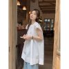 Real photo of summer off-white shirt for women puff sleeve collar one shoulder lace waist-hugging shirt short top