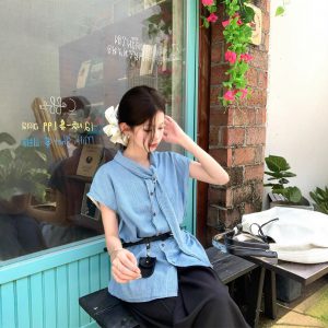 Real photos of Korean loose casual shirts in summer in women’s design and slim tops