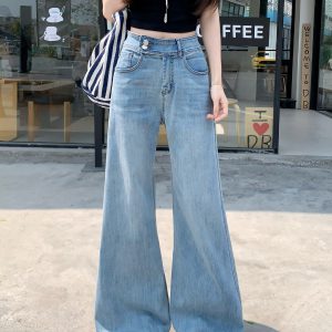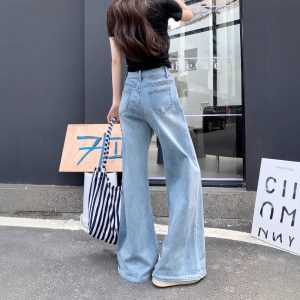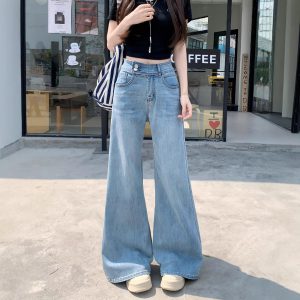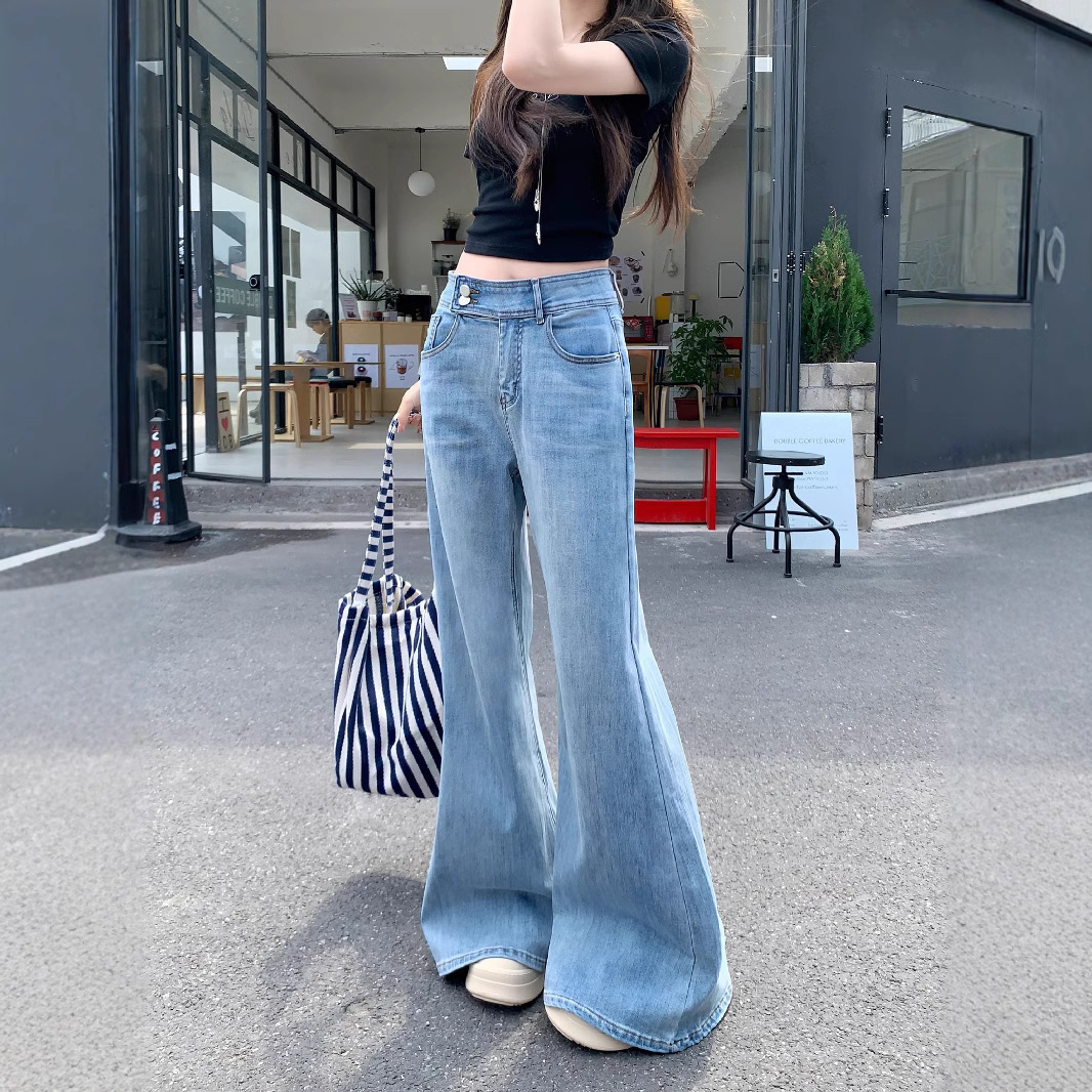 Real photos of summer loose and slightly loose elastic jeans for women’s casual and versatile wide-leg trousers