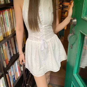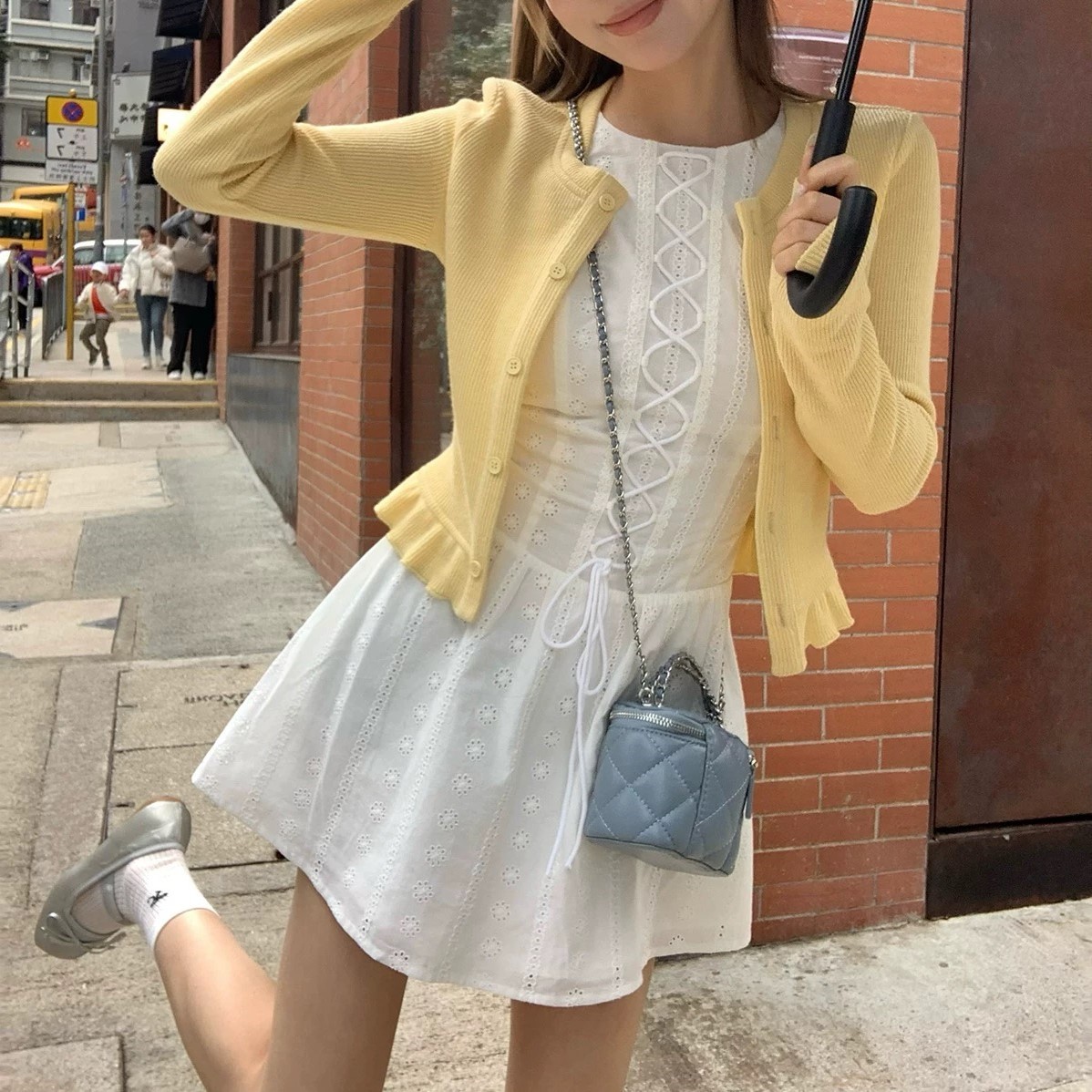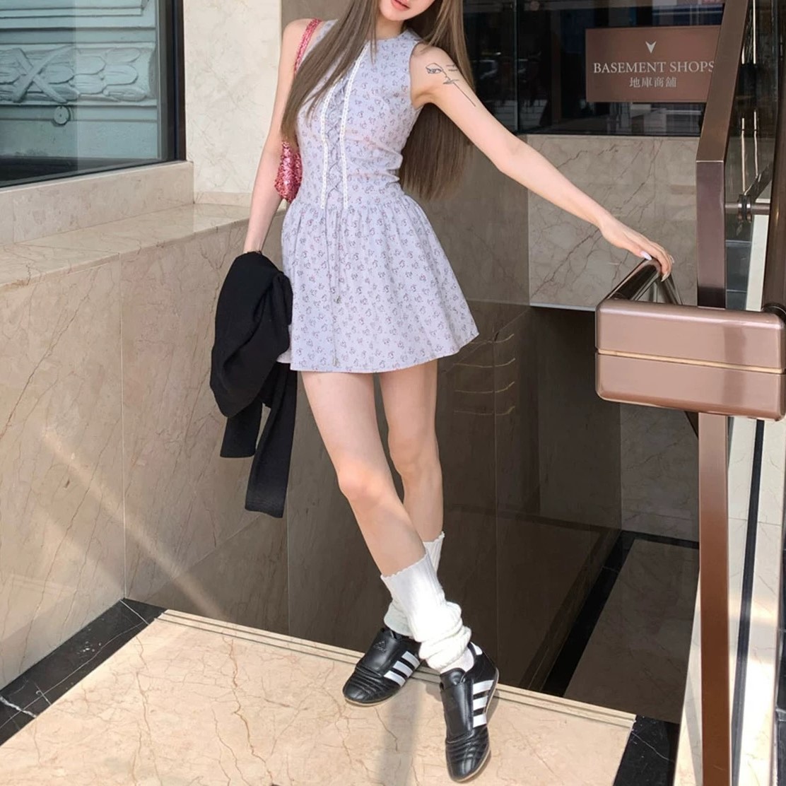 Showa girl, floral sleeveless vest dress, temperament, waist-hugging first love little white skirt