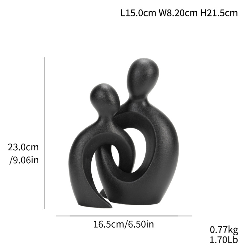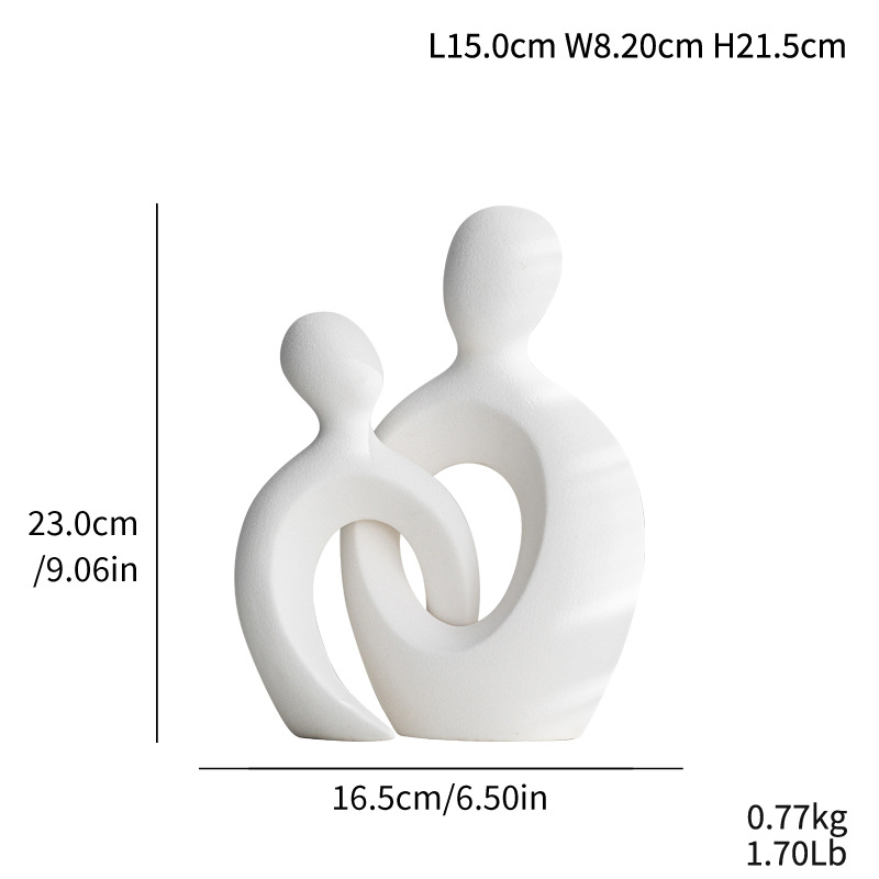 Simple abstract couple body snuggling ceramic home decorations