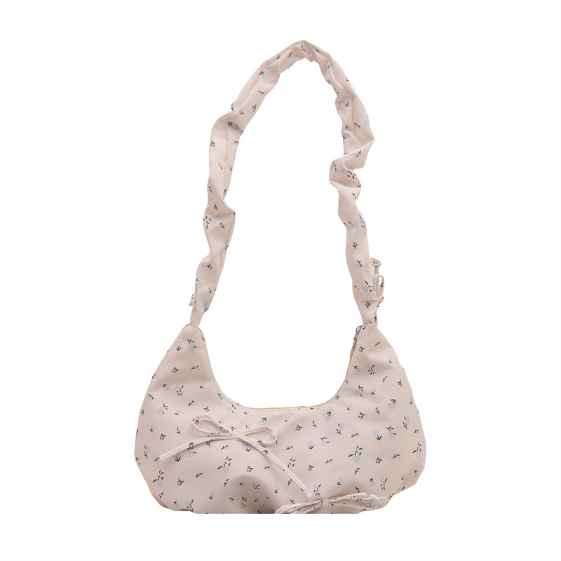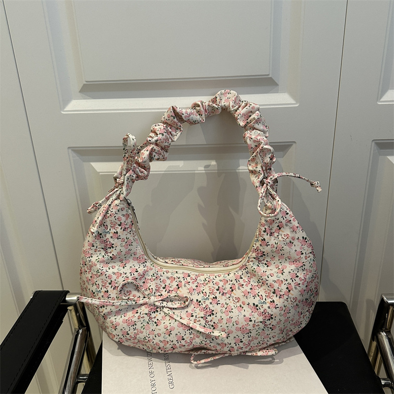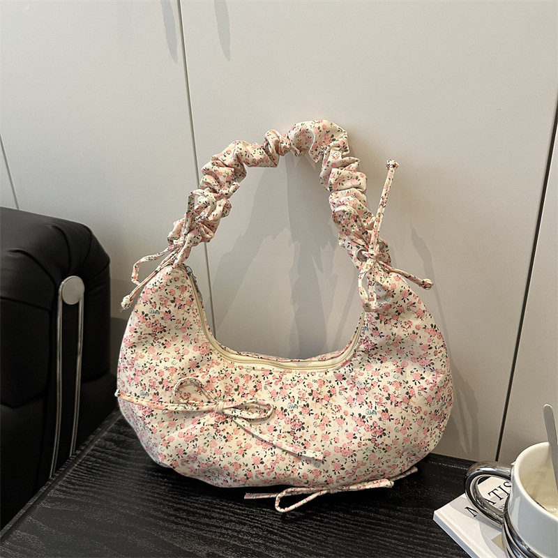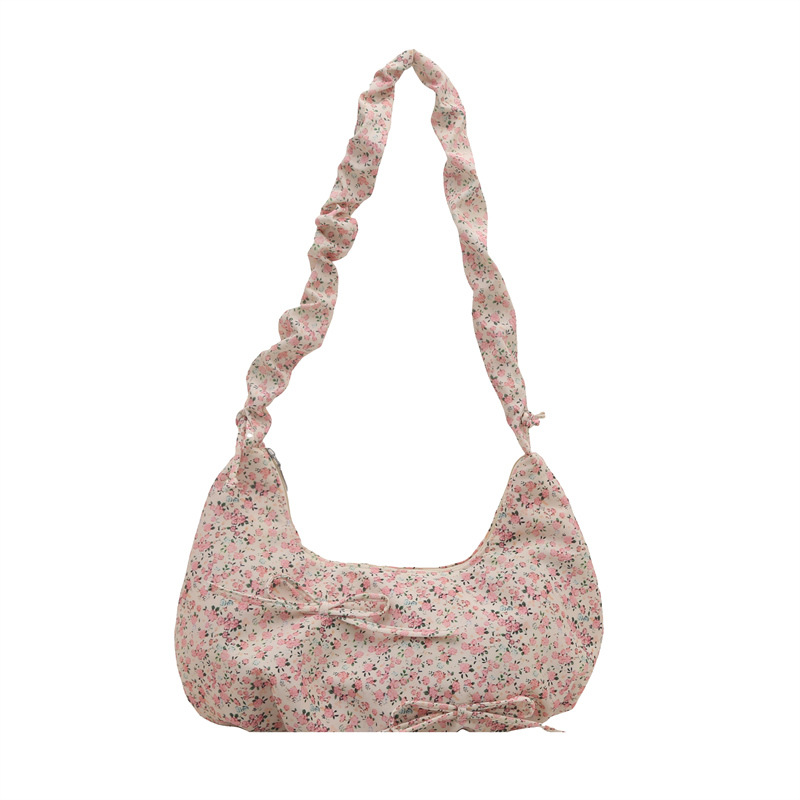 Small fresh and high-value bow-breaking crossbody bag pleated one-shoulder armpit bag casual crossbody canvas bag
