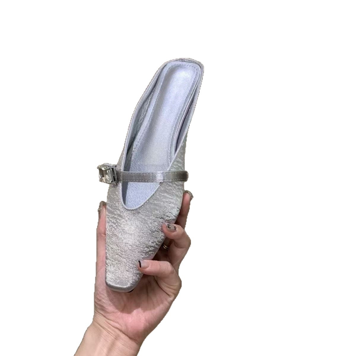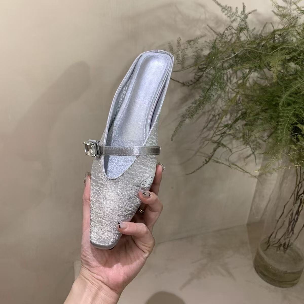 Spring and summer women’s shoes fashionable satin rhinestone square-toe slippers for women flat heel bag half-slippers for women