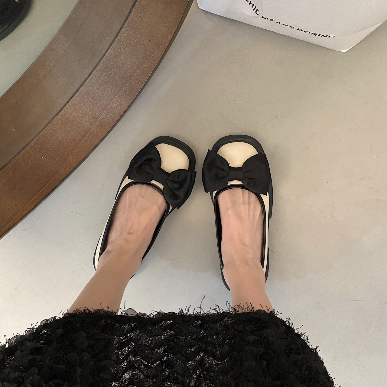 Spring style flat sole one foot pedaling shoes late night breeze lazy light round head cute simple trendy student uniform