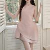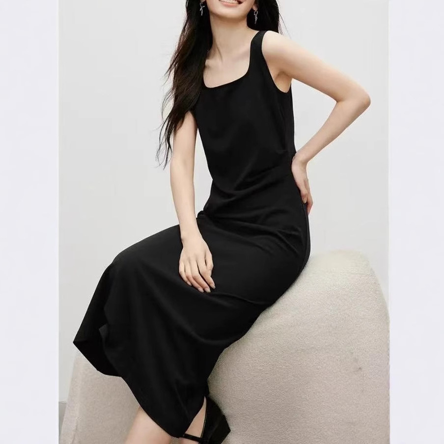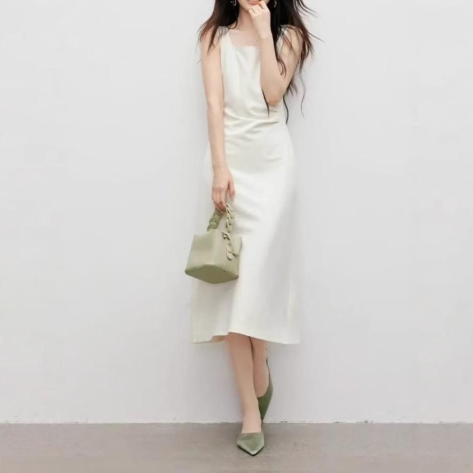 Spring women’s three-dimensional press-pleated waist-closed square collar pullover vest dress