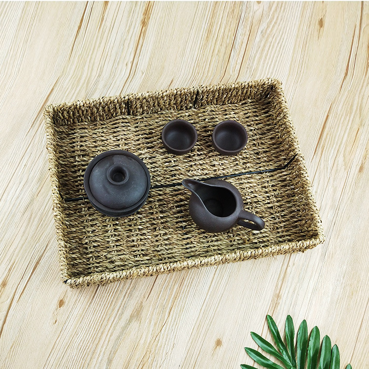 Straw storage basket snack tray jewelry cosmetic storage basket bathroom desktop storage basket seaweed weaving