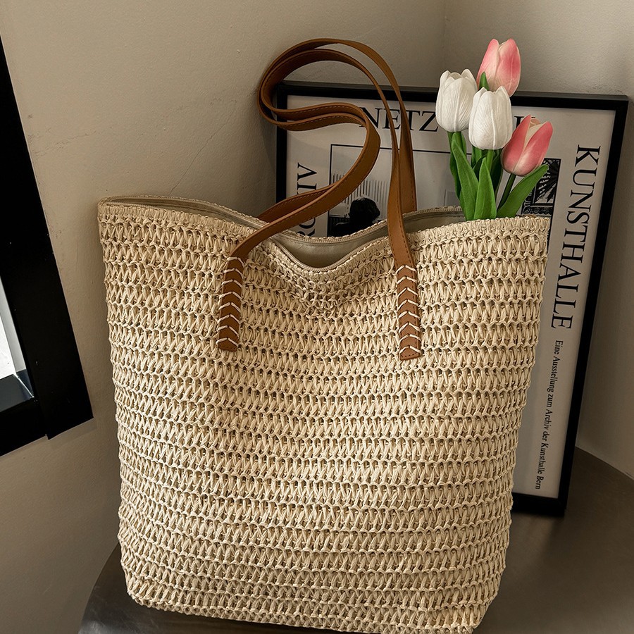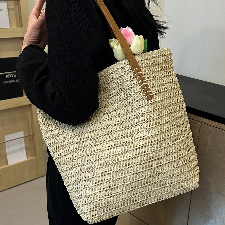 Straw woven bag fashionable shoulder bag niche design women’s shoulder bag large capacity personalized tote bag