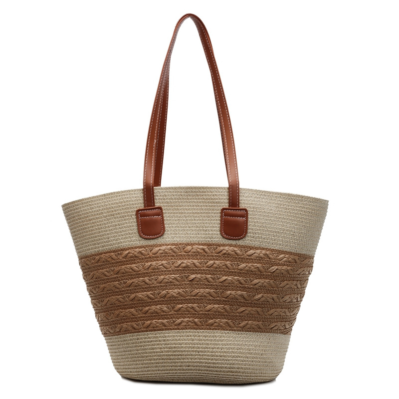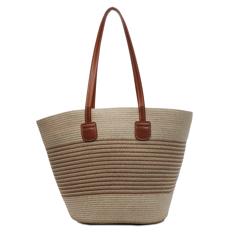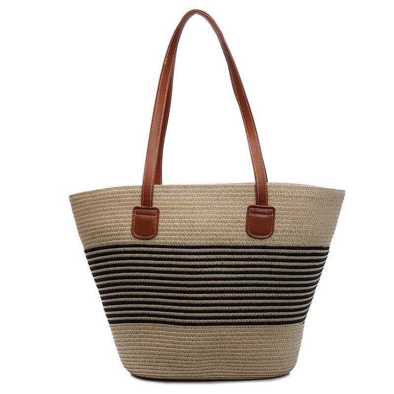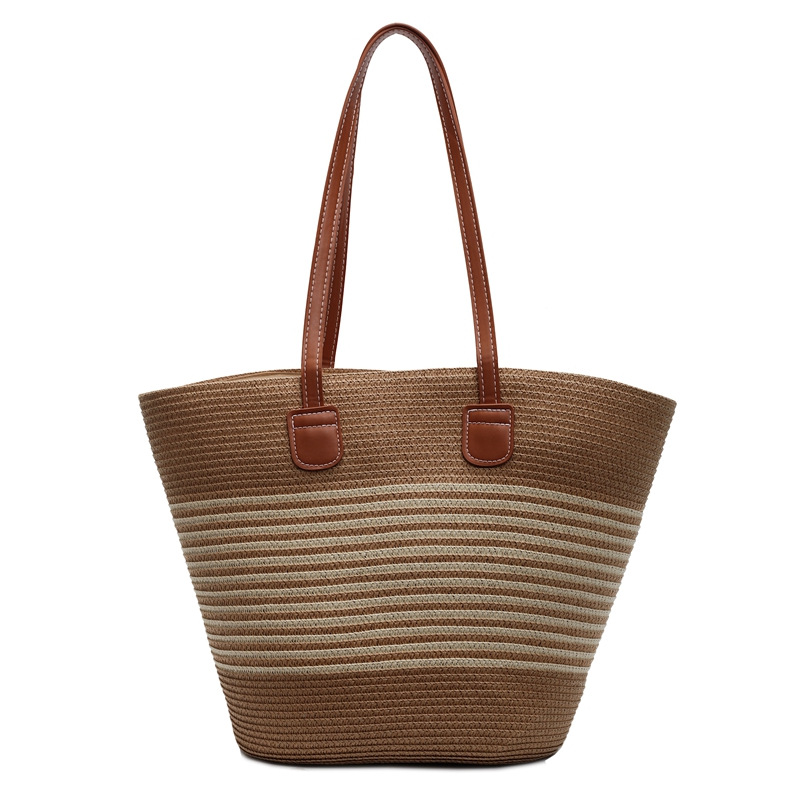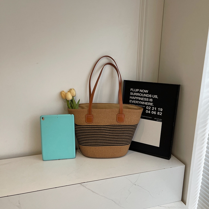 Straw woven versatile large capacity bag women’s shoulder bag high-end commuting bag tote bag vacation striped trend