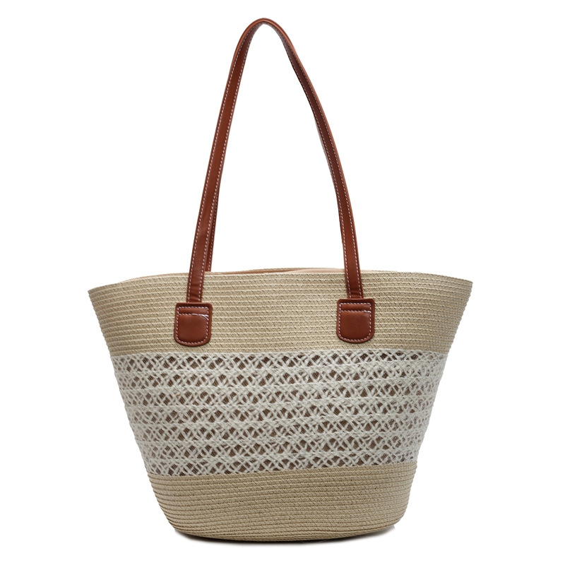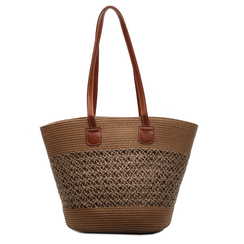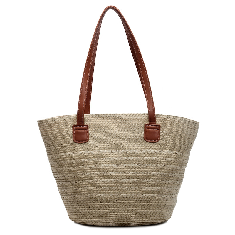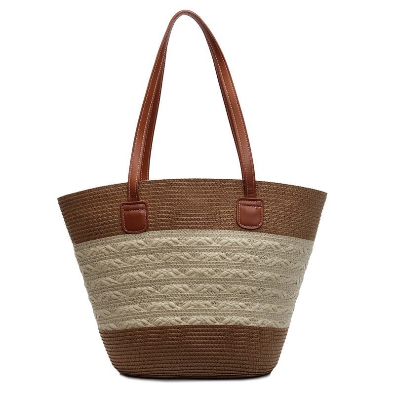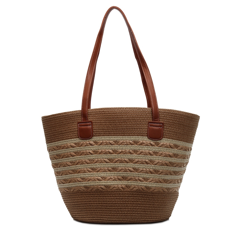 Straw woven versatile large capacity bag women’s shoulder bag high-end commuting bag tote bag vacation striped trend