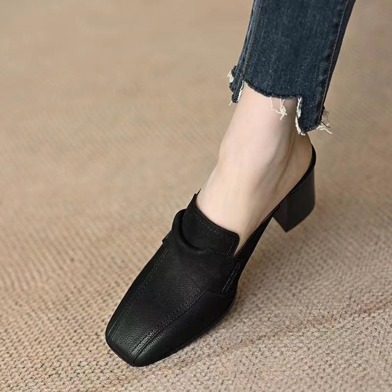 Summer and autumn thick heeled half-drag women wear lazy mules shoes for outdoor wear simple square toe high heeled lazy shoes