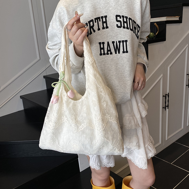 Summer fresh lace flower embroidered canvas bag versatile vest bag travel travel cloth bag one-shoulder tote bag
