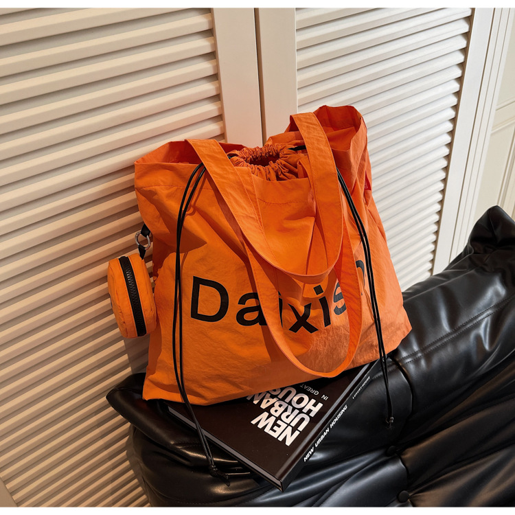 Summer nylon cloth bag women’s ultra-light and convenient folding hand-held shopping bag large capacity travel one-shoulder tote bag