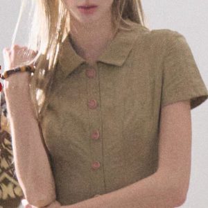 / “The wind is like a girl” Cotton College style vertical texture shirt dress pleated skirt