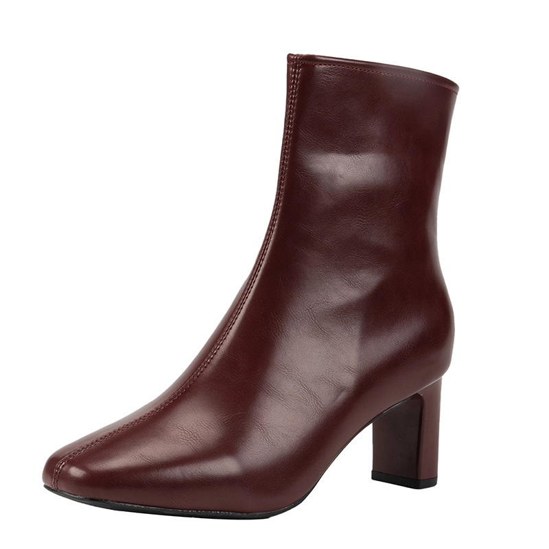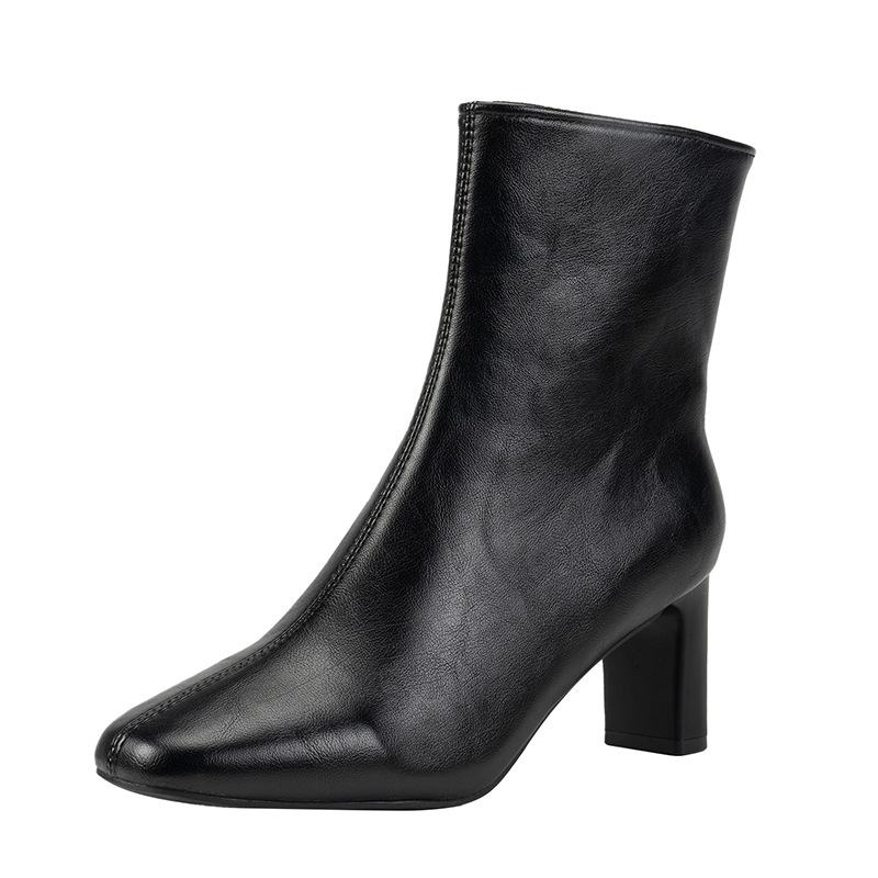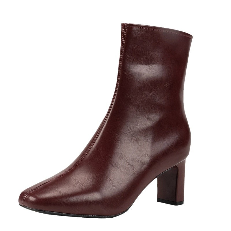 Thick heels high heels women’s fashion boots simple winter square toe niche design French Martin boots