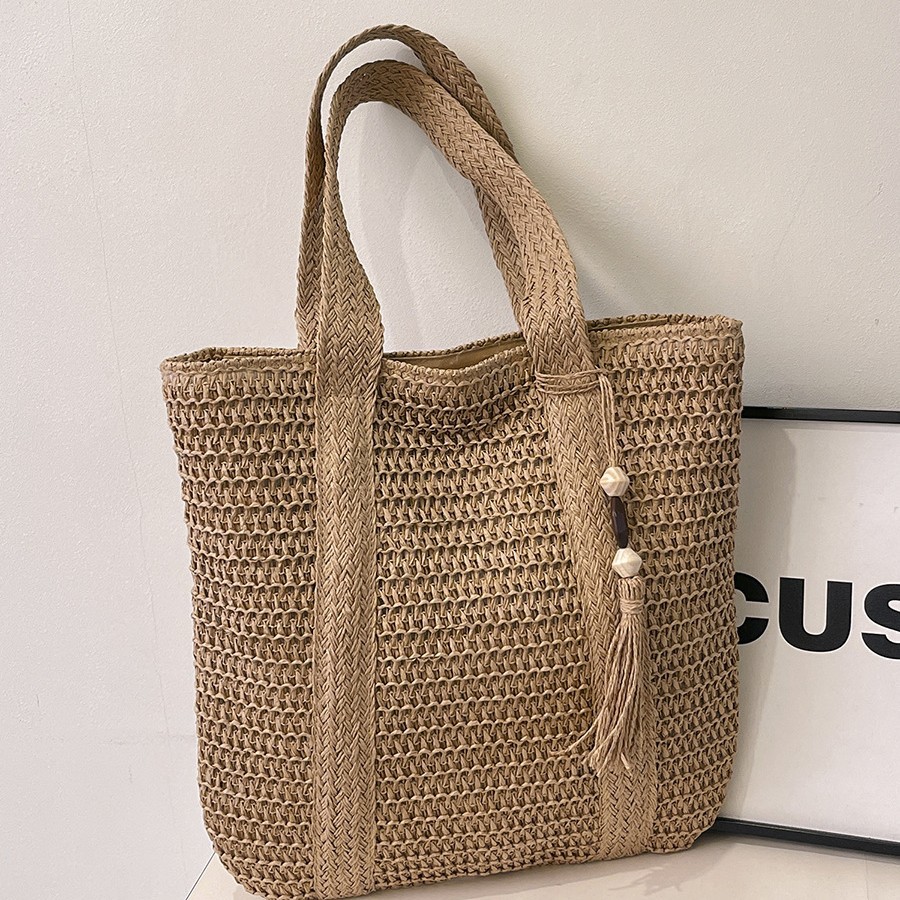 Vacation style woven large bag women fashionable simple large capacity straw woven bag summer commuter underarm bag