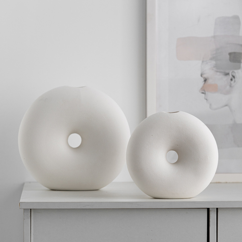Wasabi style modern simple ceramic high-end bookshelf white matte art flower arrangement soft vase ornament
