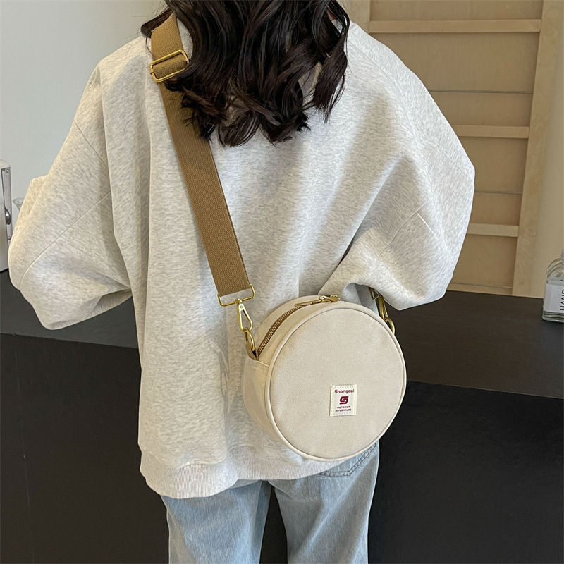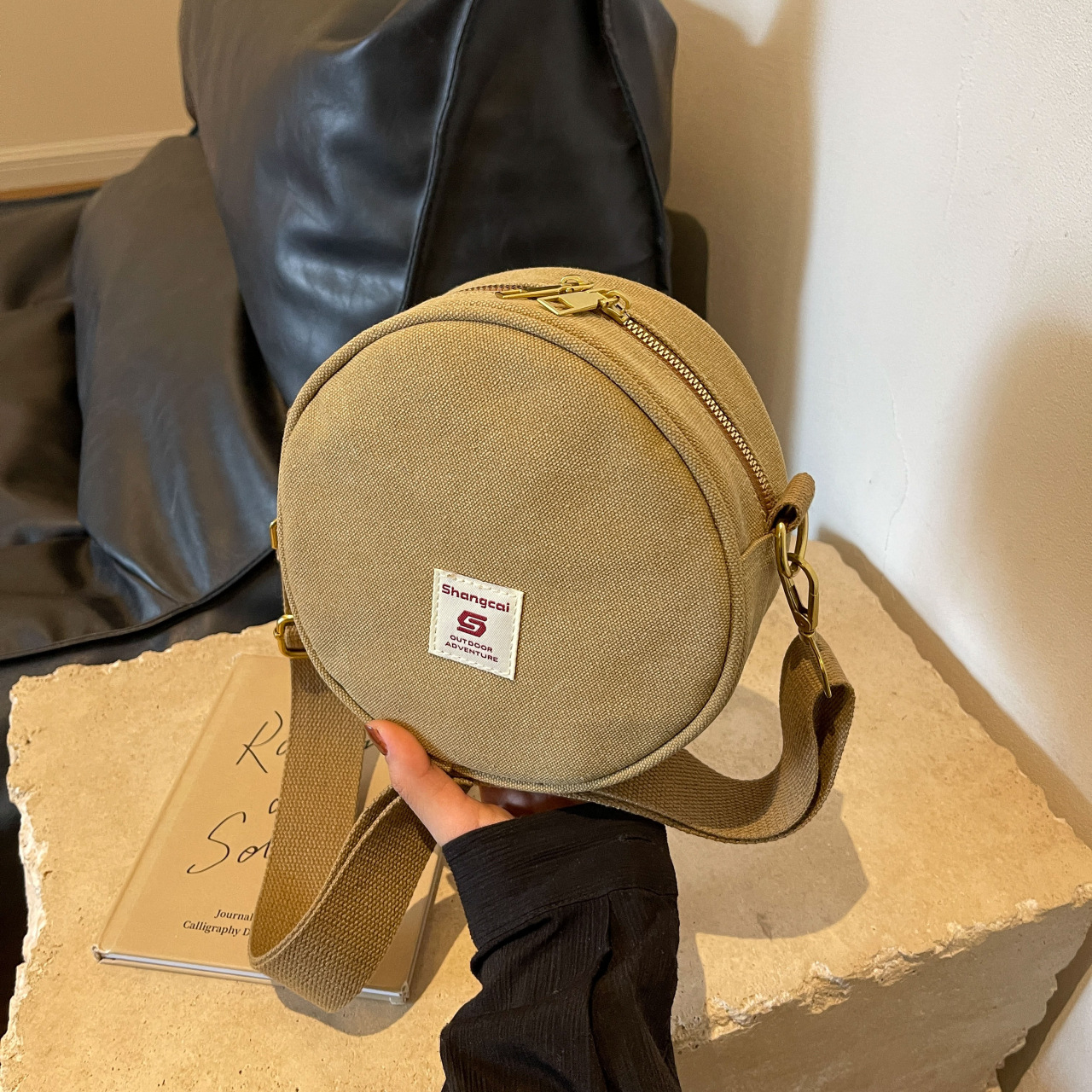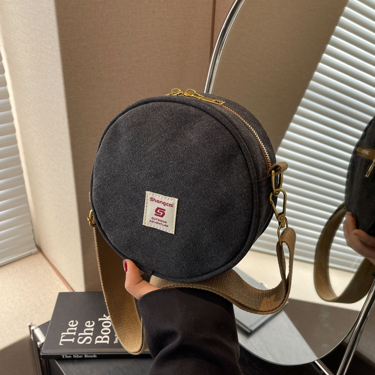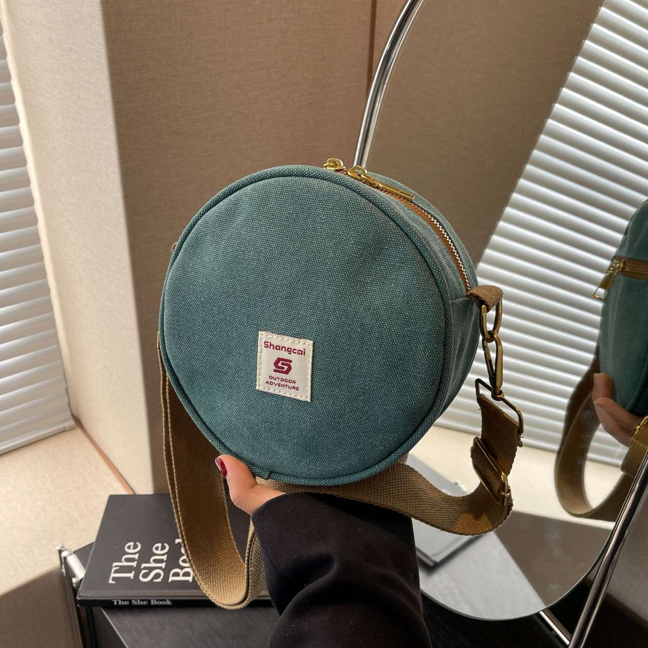 Women’s canvas round bag one-shoulder crossbody bag fashionable and fashionable cute retro fashionable versatile round bag