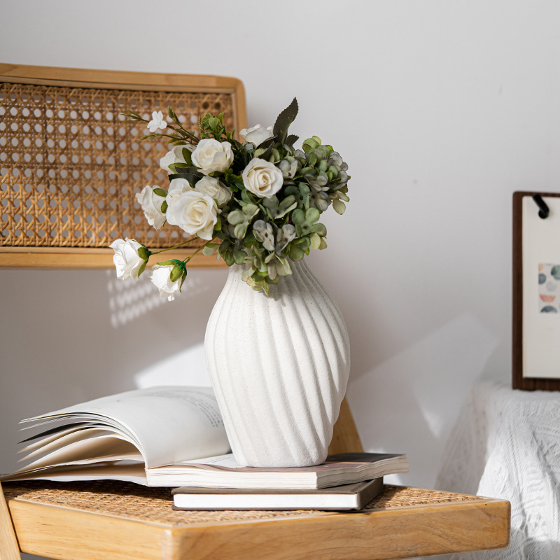Modern and simple simple white Facebook ceramic vase light luxury ornament art flower insert