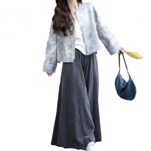 A complete set of high-end women’s outfits in early autumn, daily new Chinese short jacket, wide-leg pants, generous and decent two-piece suit