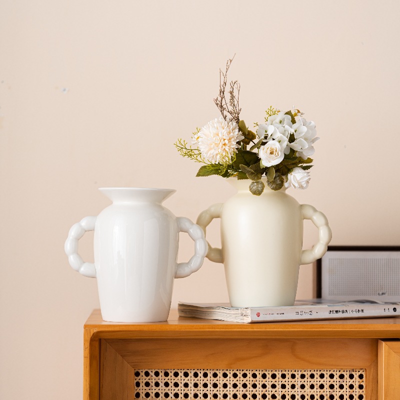 Moisturizing dots of double ear ceramic vase modern simple home soft decoration art flower insert ornaments
