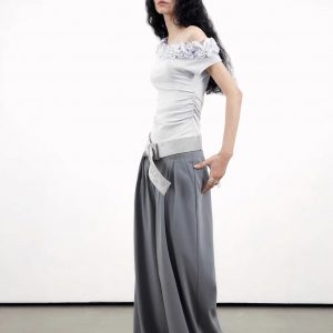 Original niche design multi-layer lace slanted shoulder shirt for women
