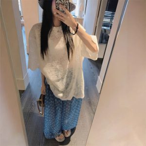 Real-life design-sensing hook-flowered hollow lace shirt thin layered sunscreen blouse printed sunscreen trousers fashion suit
