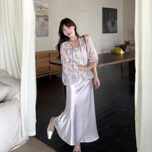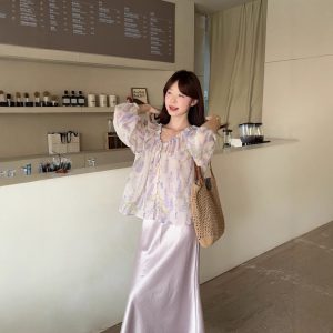 Real photos of Beidao Flower Season~ Summer loose sunscreen French temperament shirt with two-piece suspender skirt