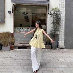 | color | Yellow shirt, lace pants |