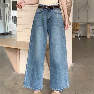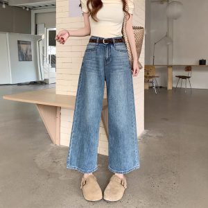 Real shot~ American retro wide-leg jeans for women in spring and summer high-waisted slimming versatile nine-point pants