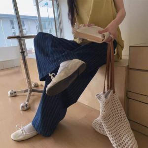Real shot of loose and slim high waist versatile floor striped jeans for women casual and fashionable floor trousers