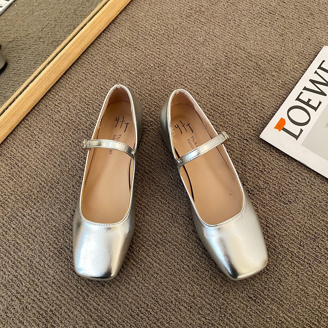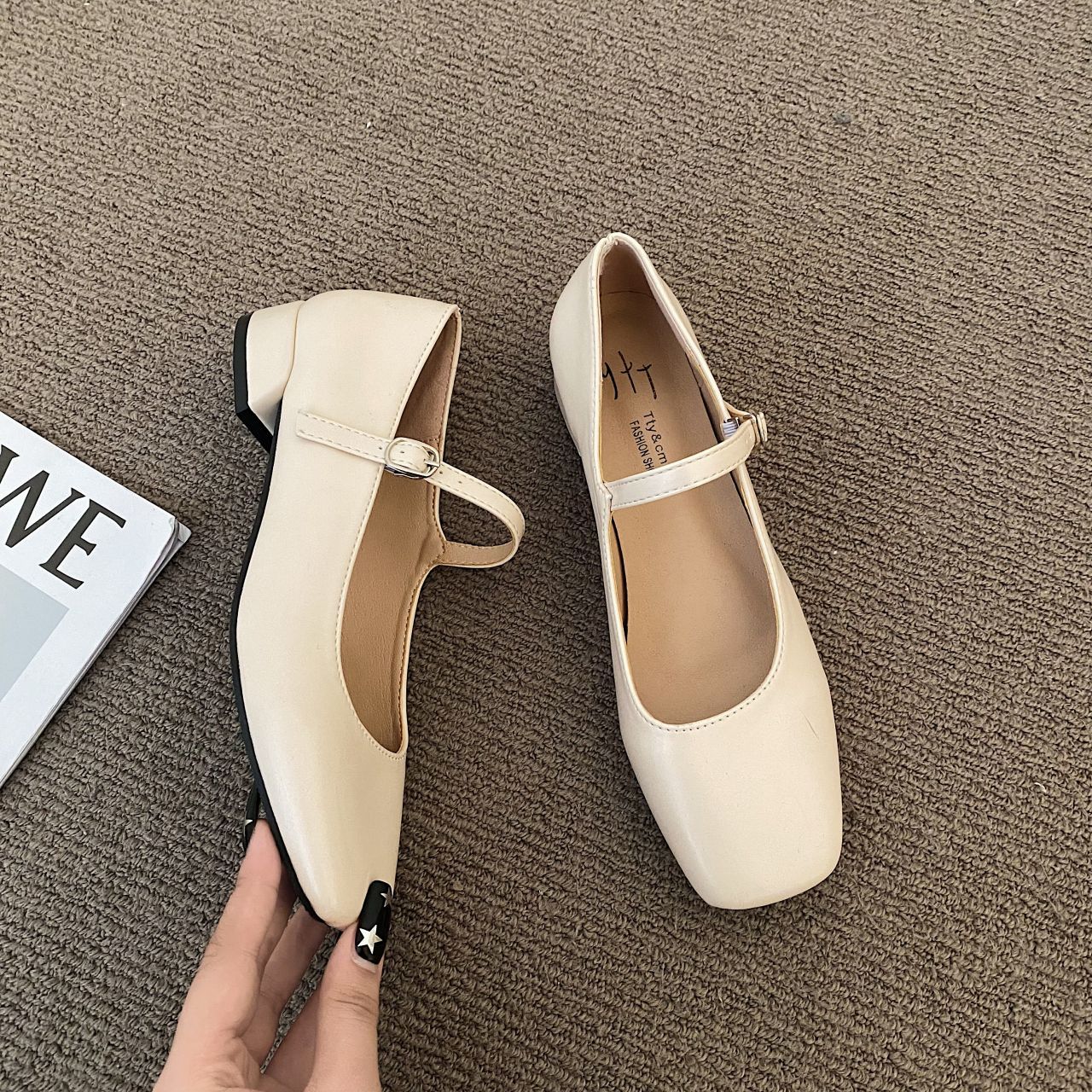 Retro square toe shallow mouth single shoes for women’s spring and autumn gentle fairy style thick heels Mary Zhen shoes