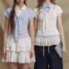 Simple multi-color lycel round neck waist-slimming stacked fake two-piece vest short sleeves