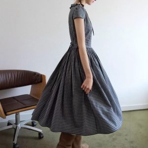 Summer Symphony’ retro plaid decorative earrings micropuff sleeves high waist big skirt dress for women