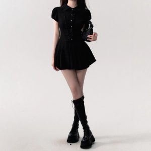 / “Waiting for you to finish class” dress, line skirt, short-sleeved shirt skirt, commuting college style hot girl tea break skirt